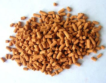 氧化鐵脫硫劑是以氧化鐵為主要活性組份,添加其它促進劑加工而成的氣體凈化劑。在20℃~100℃之間,對硫化氫有很高的脫除性能,對硫醇類有機硫和大部分氮氧化物也有一定脫除效果。